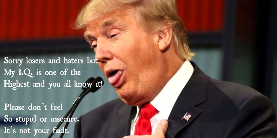 "Sorry losers and haters but my I.Q. is one of the highest and you all know it. Please don't feel so stupid or insecure. It's not your fault."