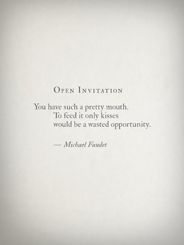 "You have such a pretty mouth. To feed it only kisses would be a wasted opportunity." — Michael Faudet