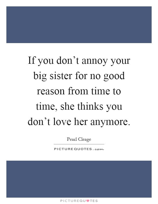 “If you don't annoy your big sister for no good reason from time to time, she thinks you don’t love her anymore.” — Pearl Cleage