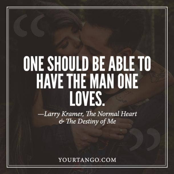 “One should be able to have the man one loves.” — Larry Kramer, The Normal Heart & The Destiny of Me
