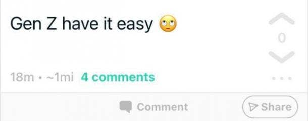 Which is why this person believes that Gen Z has it easy, frowny-face. This, and probably for other reasons.
