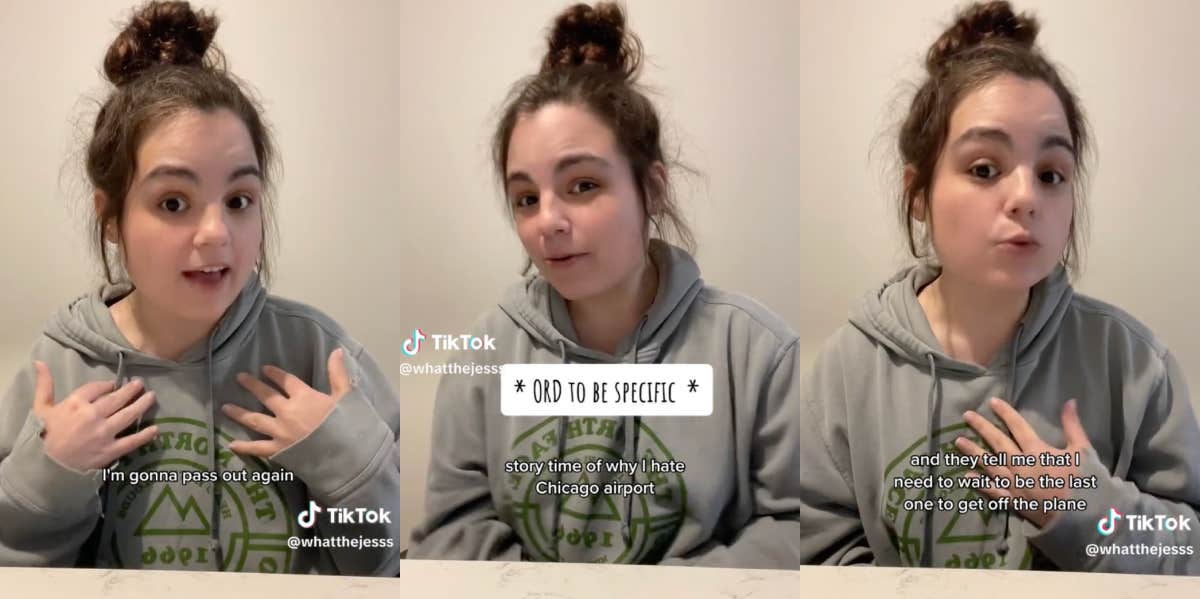 "I traveled from New York to Minnesota to go to the Mayo Clinic, and I had a layover in Chicago," Jess began in her video. "Because I use a mobility aid and had all my medical supplies and my medical condition, I did have accommodations set up for my flights."