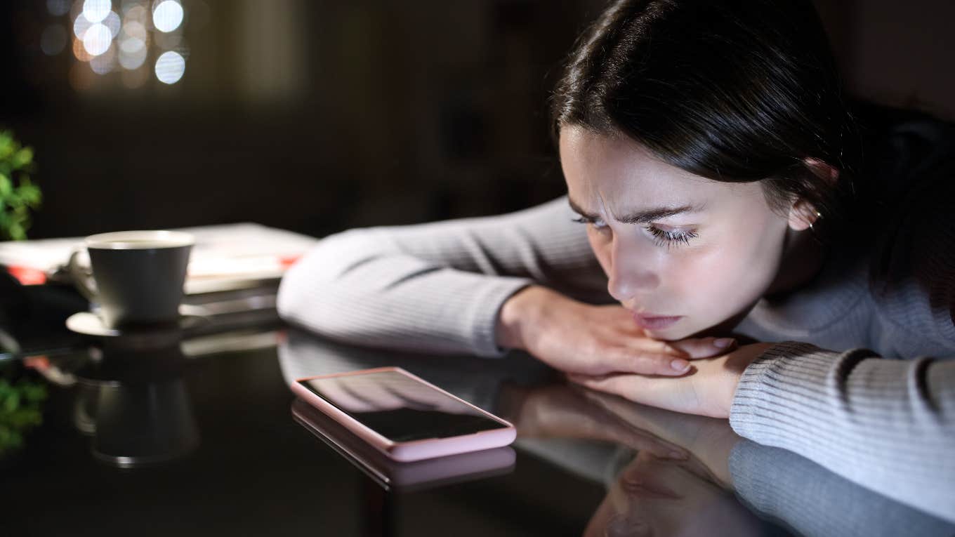 instances when phone put down loved ones agitated woman posts anyways Mariaphoto3 / Shutterstock