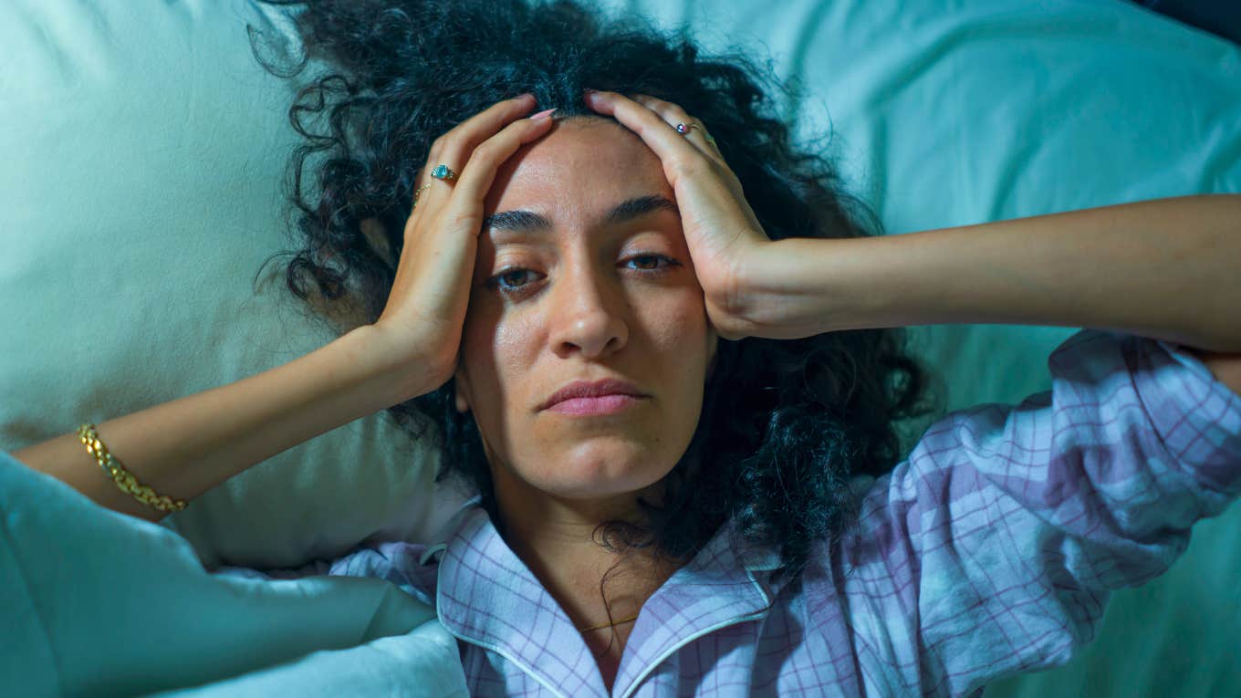 exhausted woman lying awake at night in bed Lysenko Andrii | Shutterstock