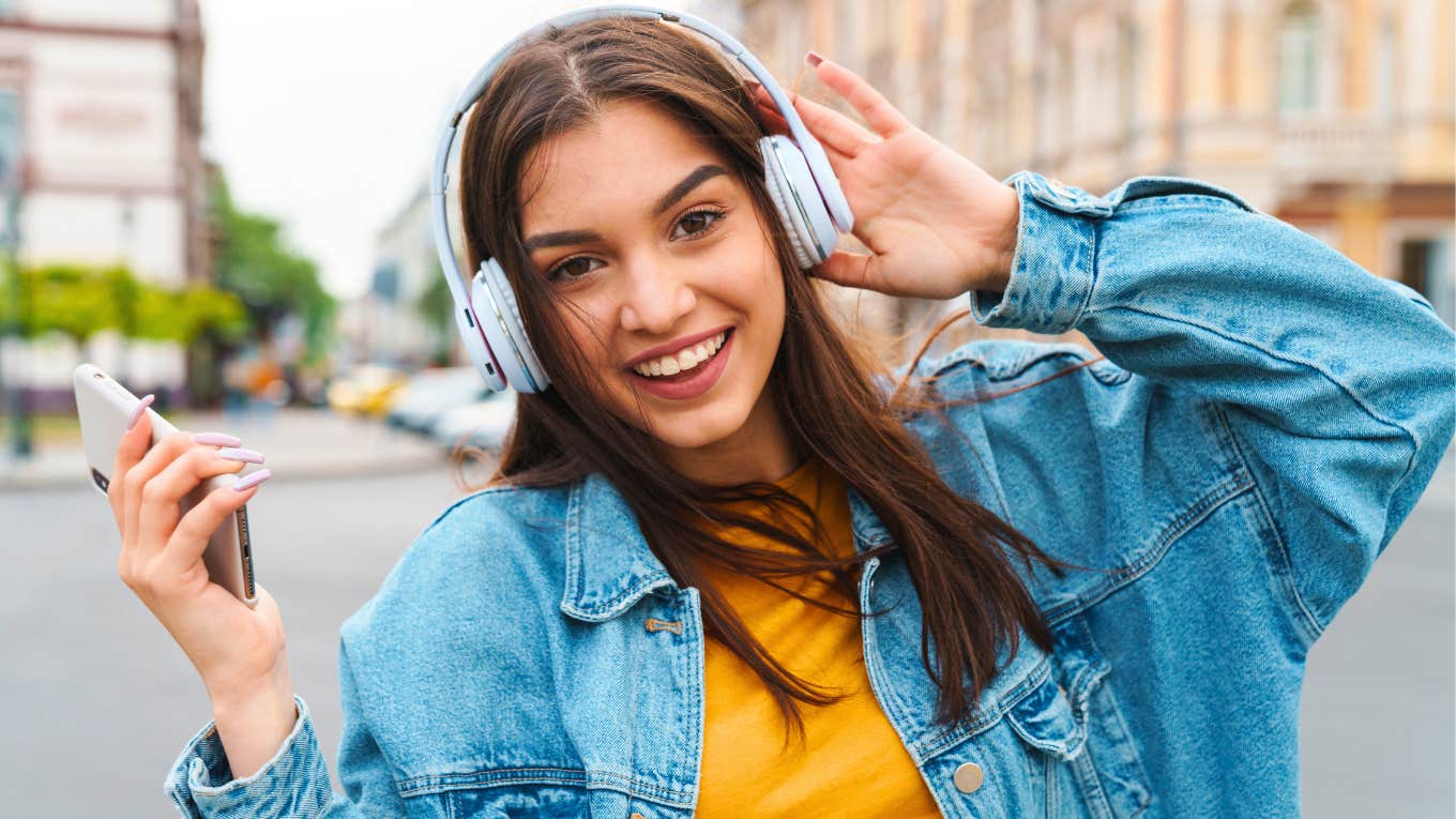 woman who needs noise to focus wearing headphones dancing outside Dean Drobot | Shutterstock
